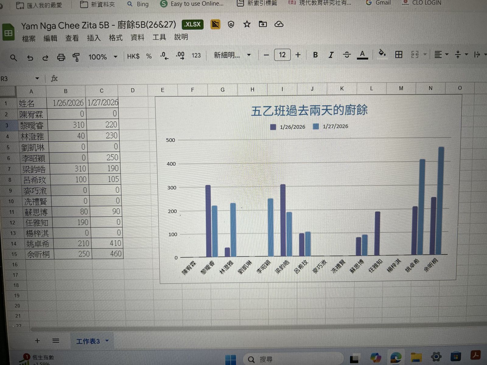 五年級午餐廚餘統計活動